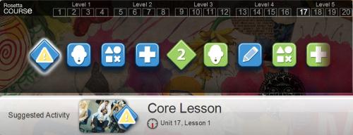 Each level of Rosetta Course is divided into units with lessons and focused activities. Core lessons teach you new language. Focused activities build skills such as Speaking and Vocabulary to reinforce the language you've learned. At the end of each Unit in Rosetta Course, a conversational Milestone prepares you for live practice in live Rosetta Studio® sessions.