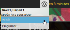 Cuando llegue el momento de su sesión de Rosetta Studio, haga clic en el botón Asistir que aparece en la Pantalla de inicio. Siga las instrucciones para calibrar sus auriculares. Si tiene algún problema, haga clic en Ayuda en vivo.